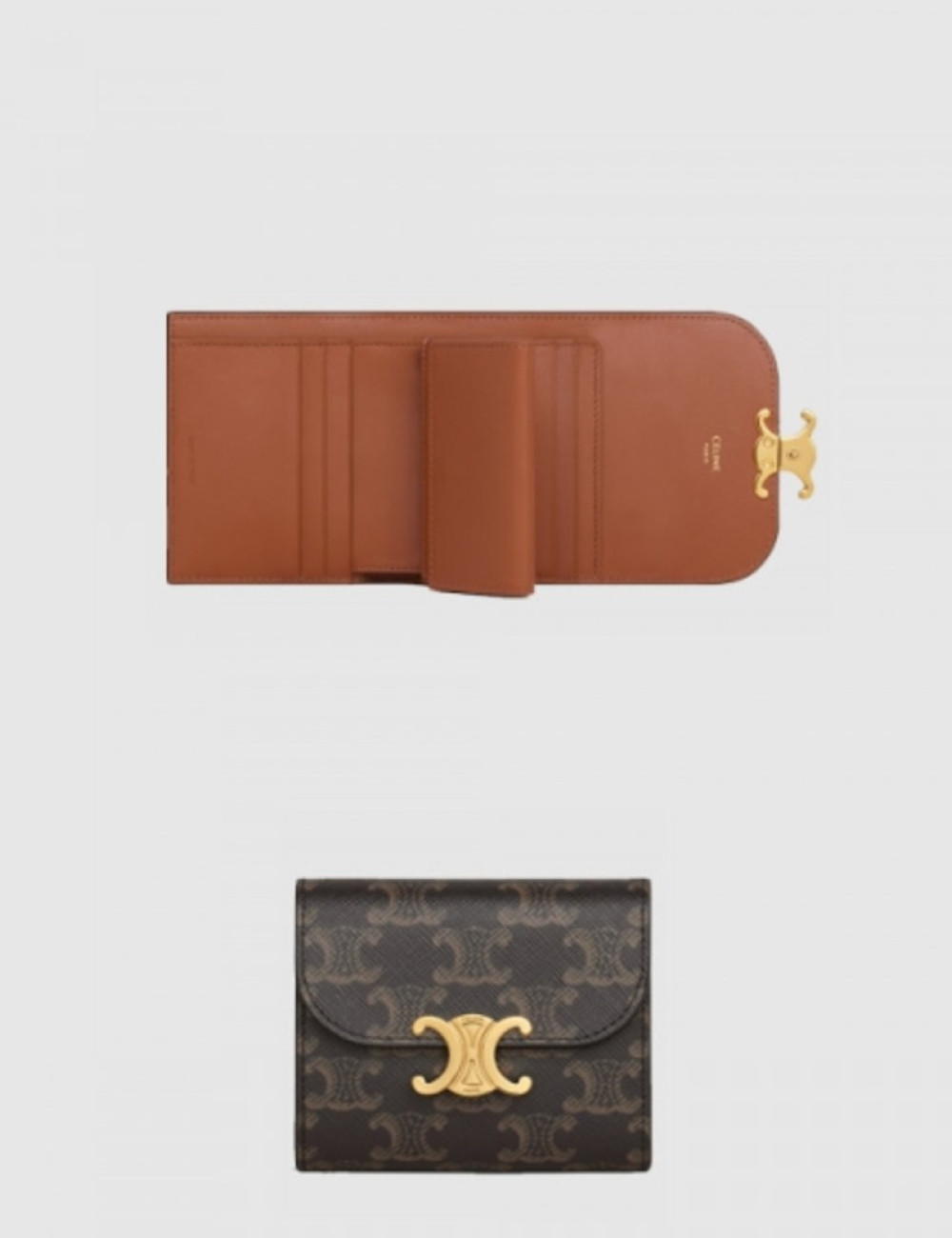 트리옹프 스몰 플랩 반지갑 탄 > 셀린느
