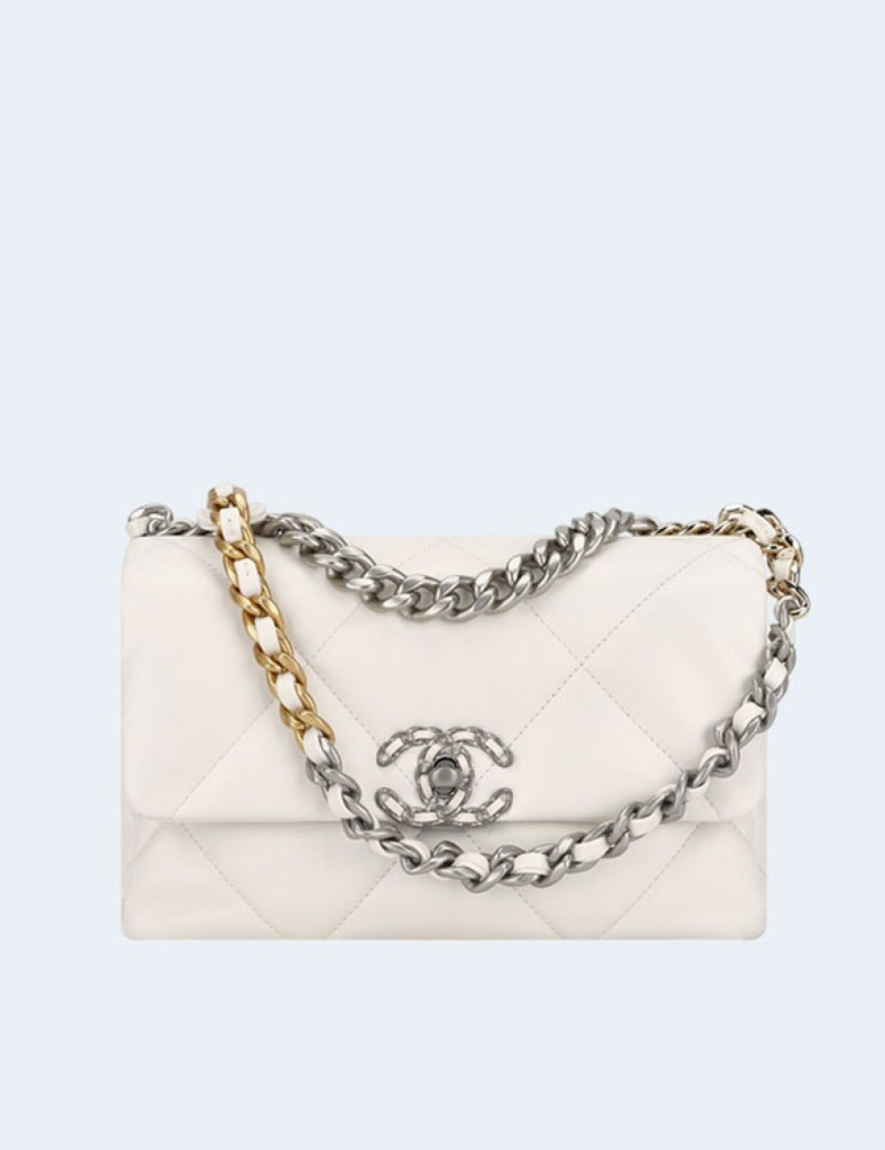 샤넬 19백 미디움 램스킨 실버 메탈 화이트