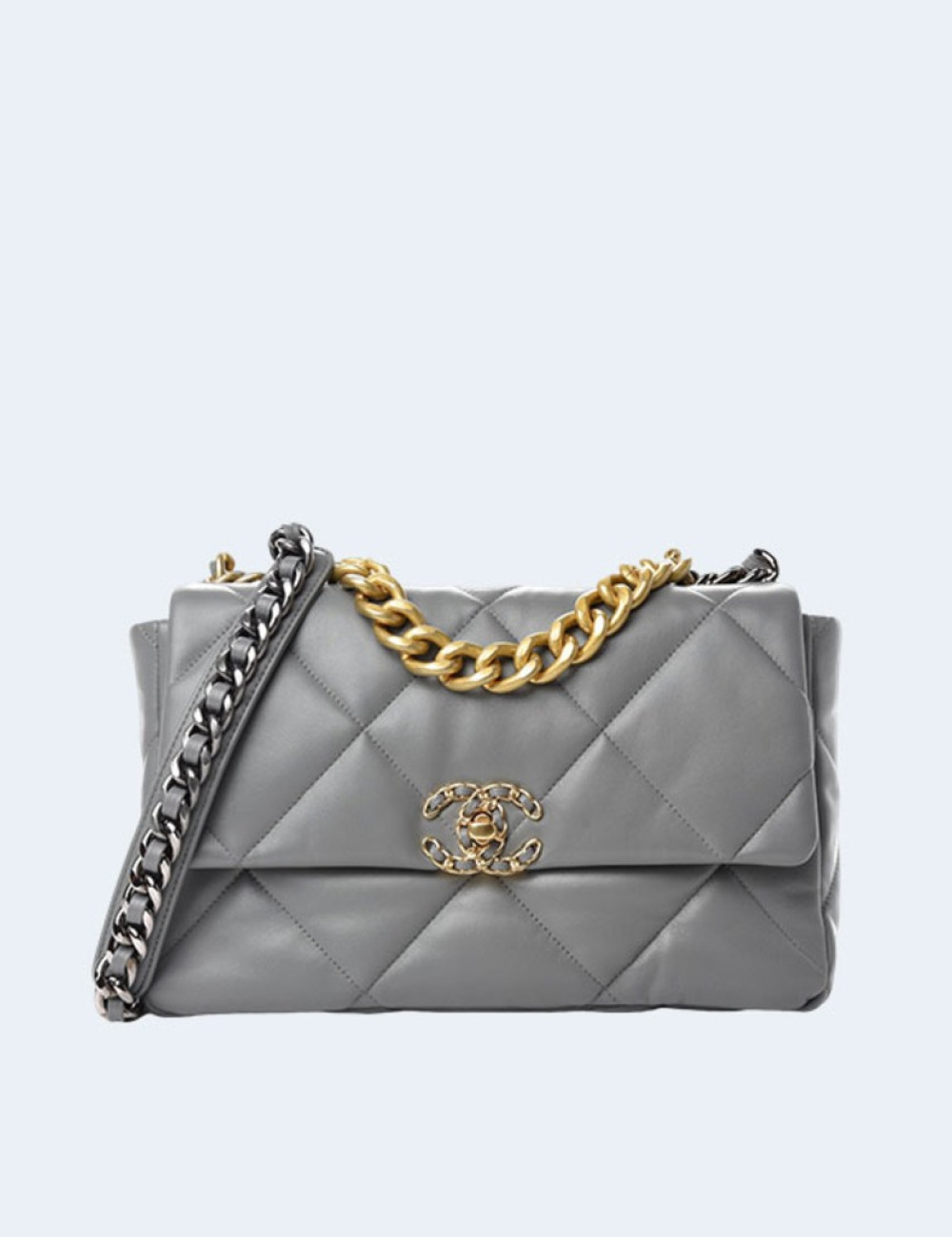 샤넬 19백 미디움 램스킨 그레이 골드