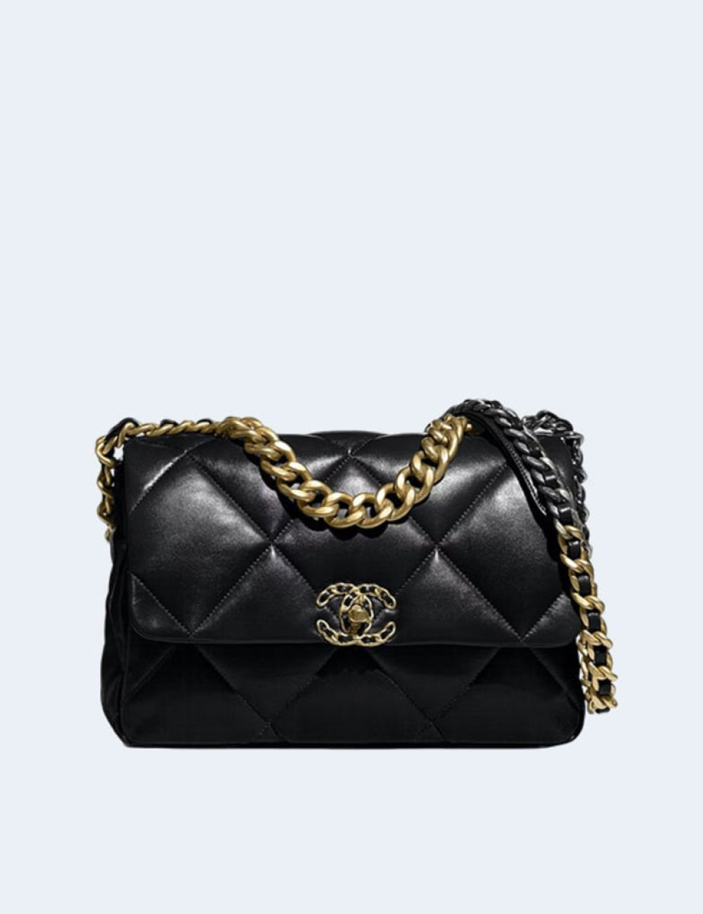 샤넬 19백 미디움 램스킨 블랙 골드