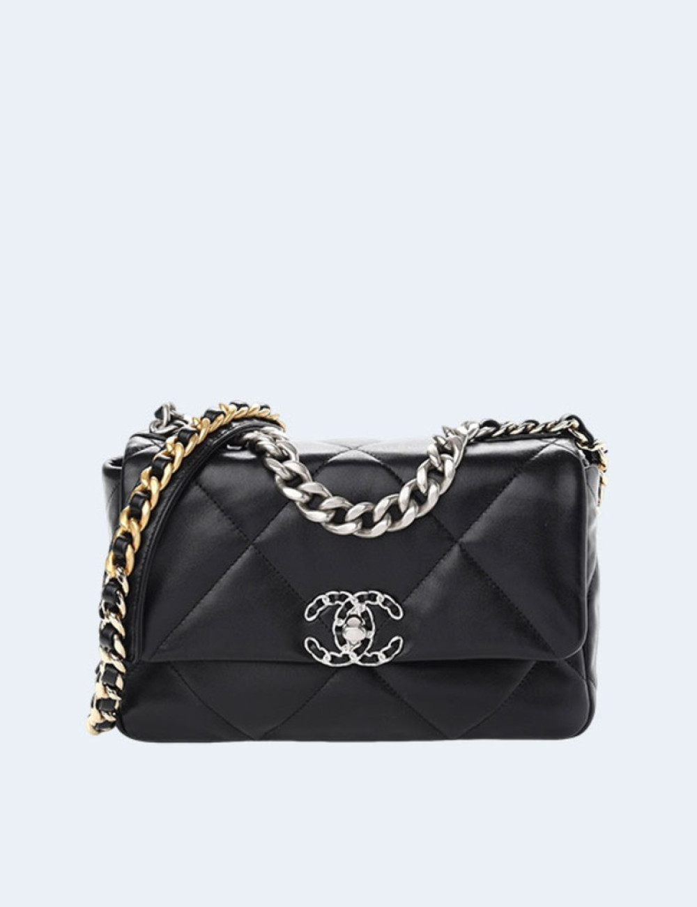 샤넬 19백 미디움 램스킨 블랙 실버
