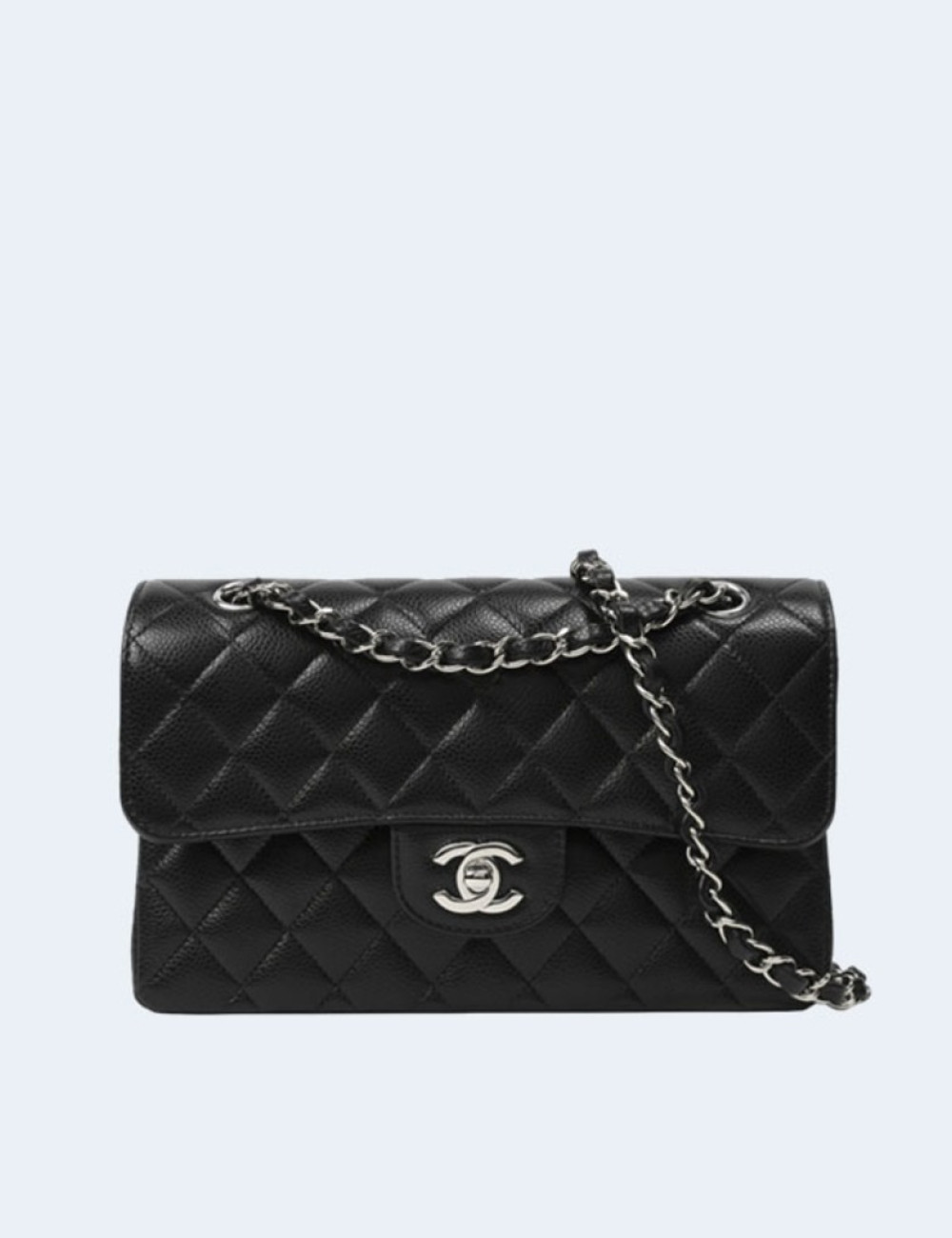 클래식 스몰 캐비어 블랙 실버 > 샤넬