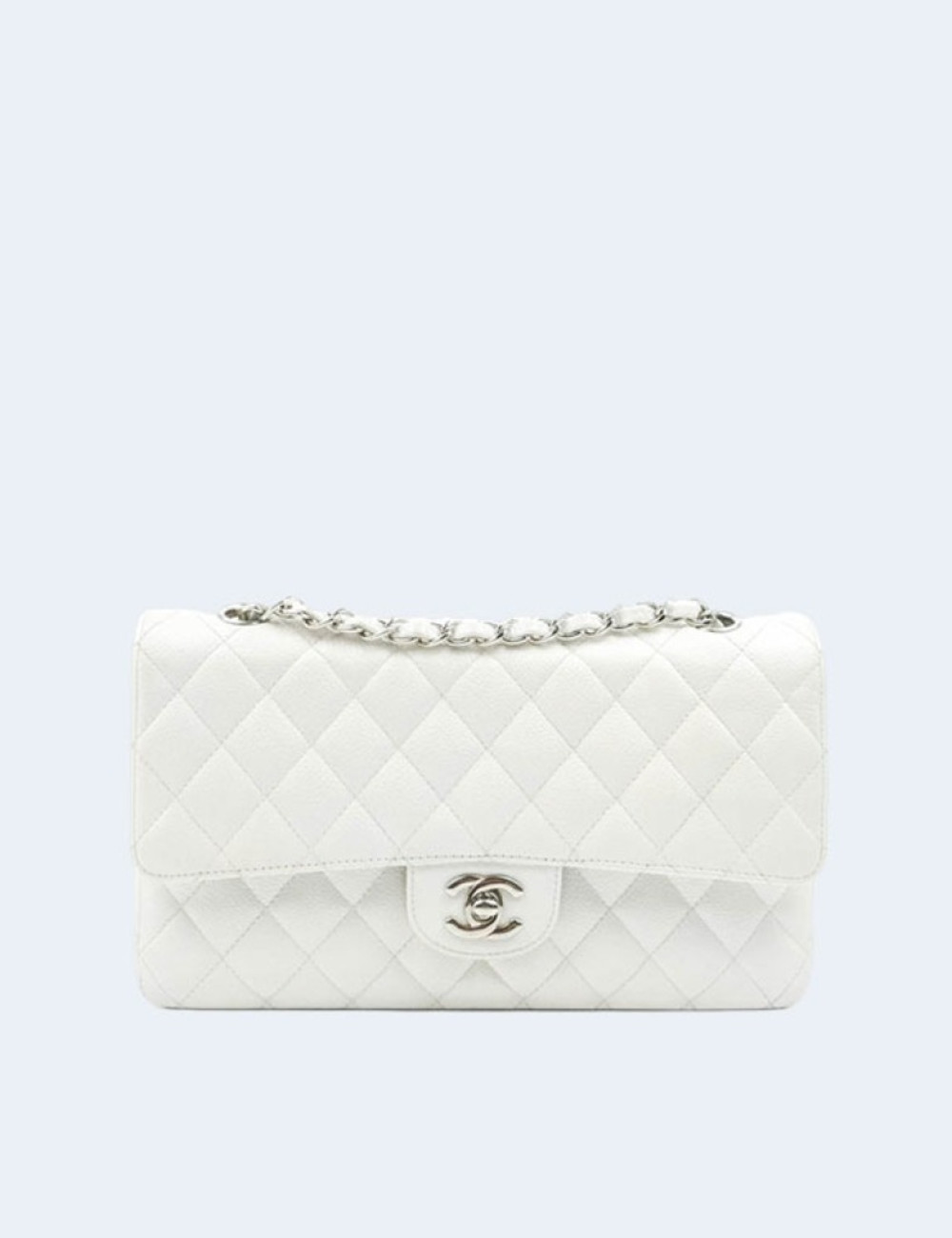 샤넬 클래식 미디움 캐비어 화이트 실버