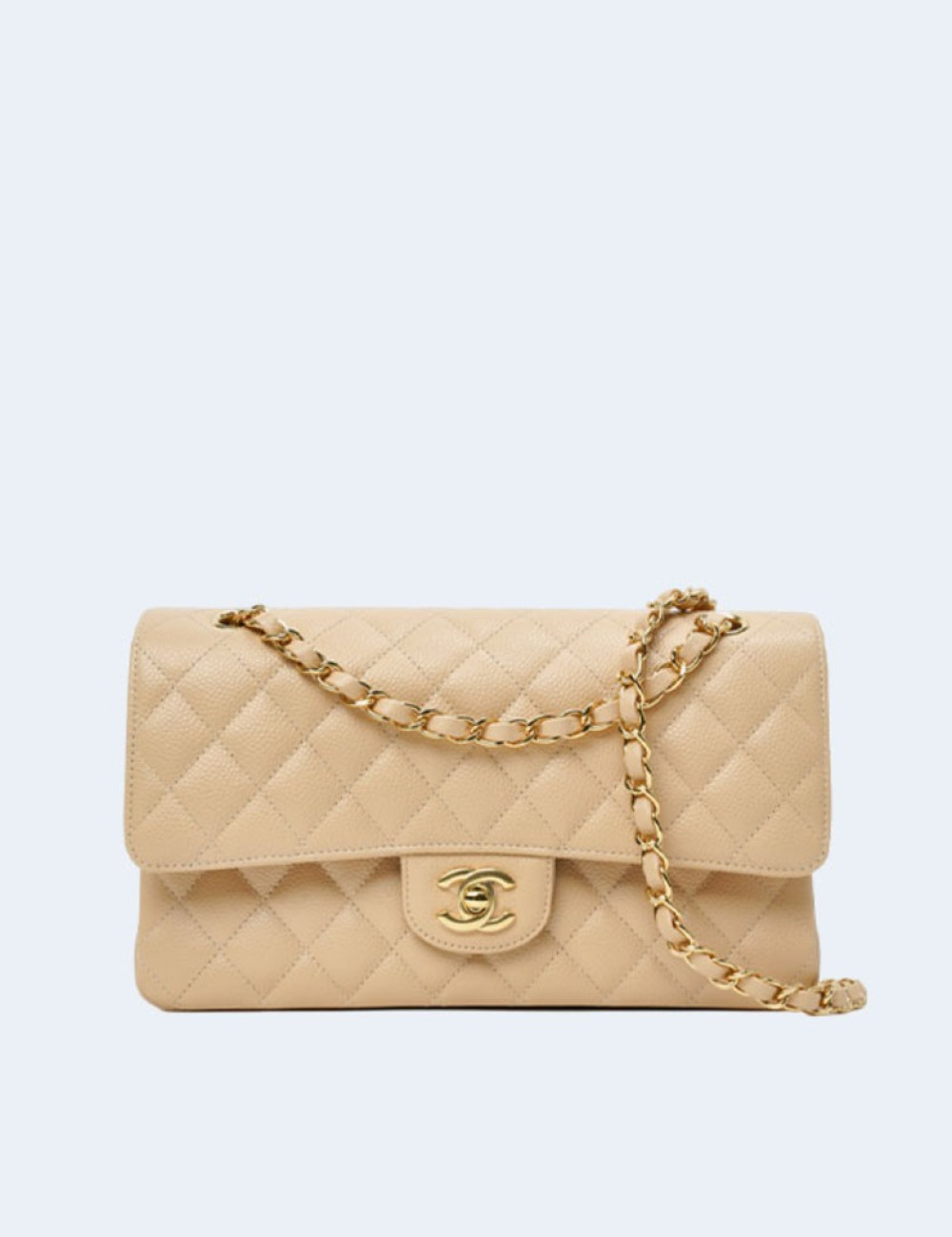 클래식 미디움 캐비어 베이지 골드 > 샤넬