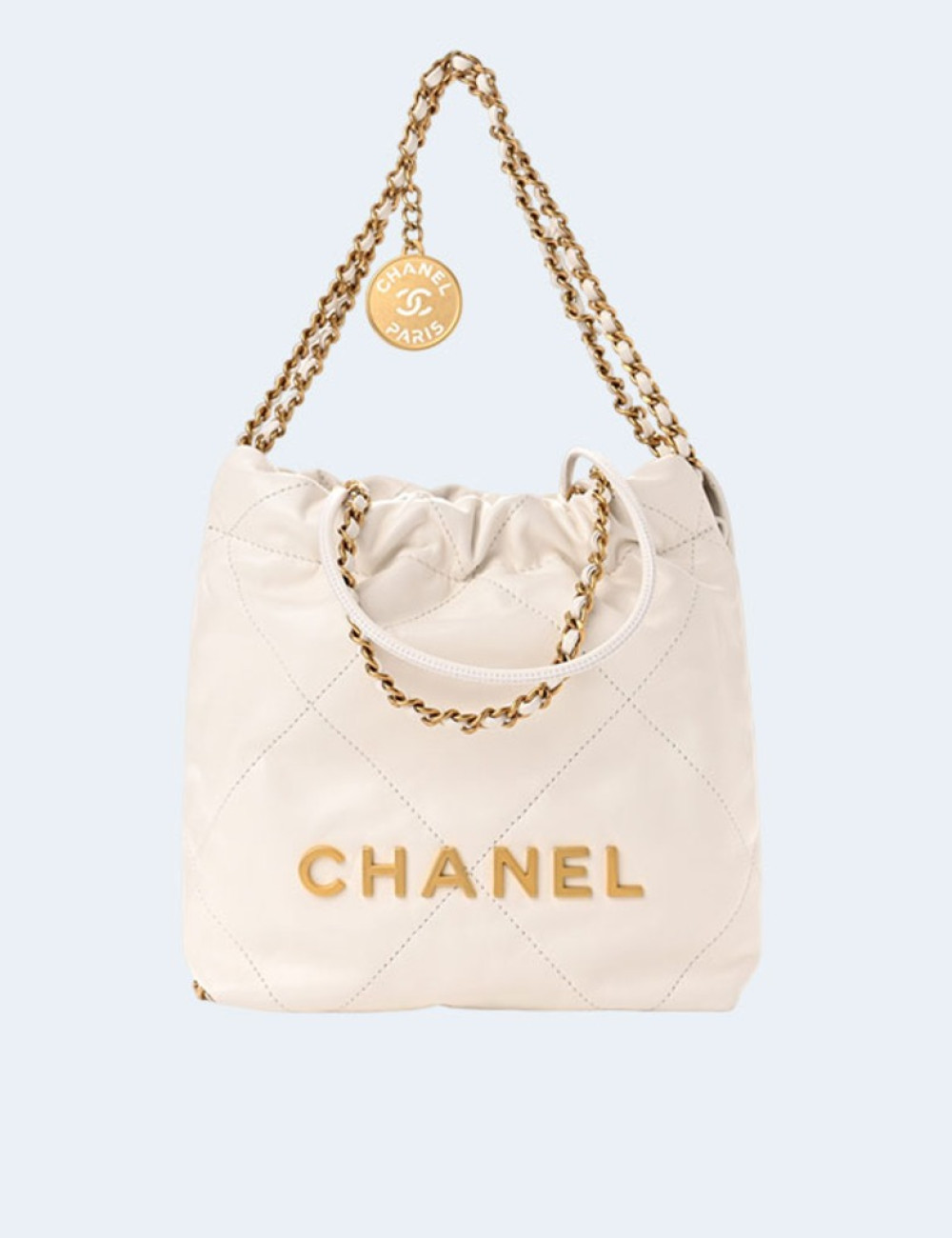 샤넬 22백 미니 카프스킨 화이트 골드