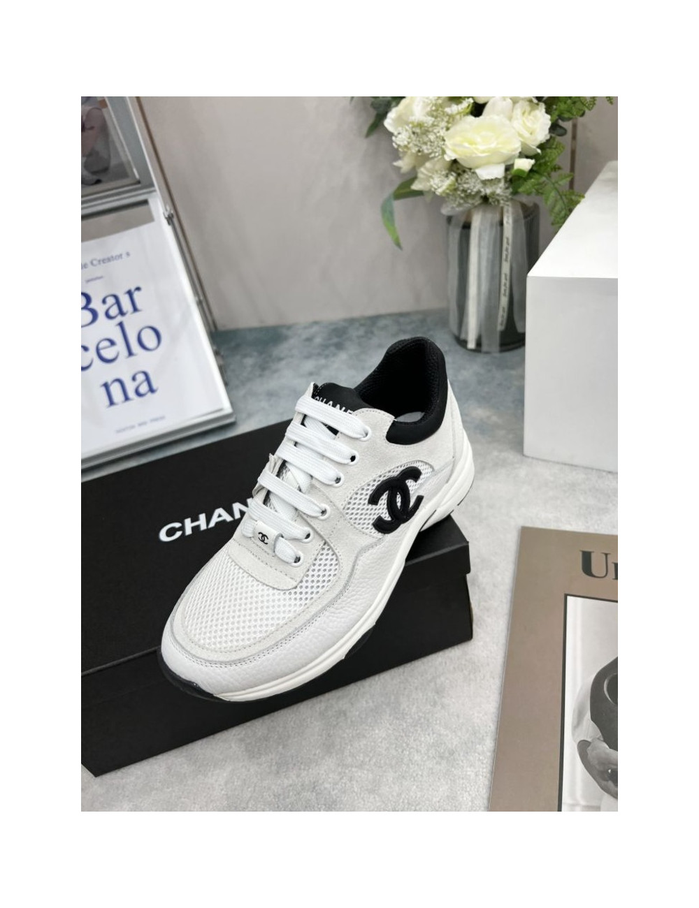 스니커즈 메쉬 스웨이드 카프스킨 & 화이트 블랙 > 샤넬