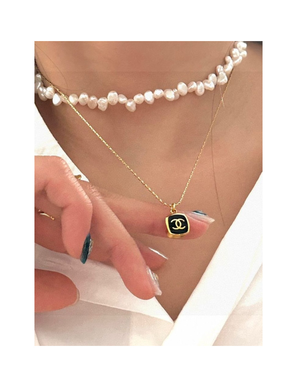 빈티지 샤x 블랙 스퀘어 다이얼 목걸이 > 샤넬