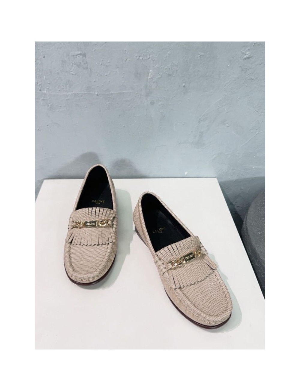 골드 체인 베이지 프린지 로퍼 > 셀린느