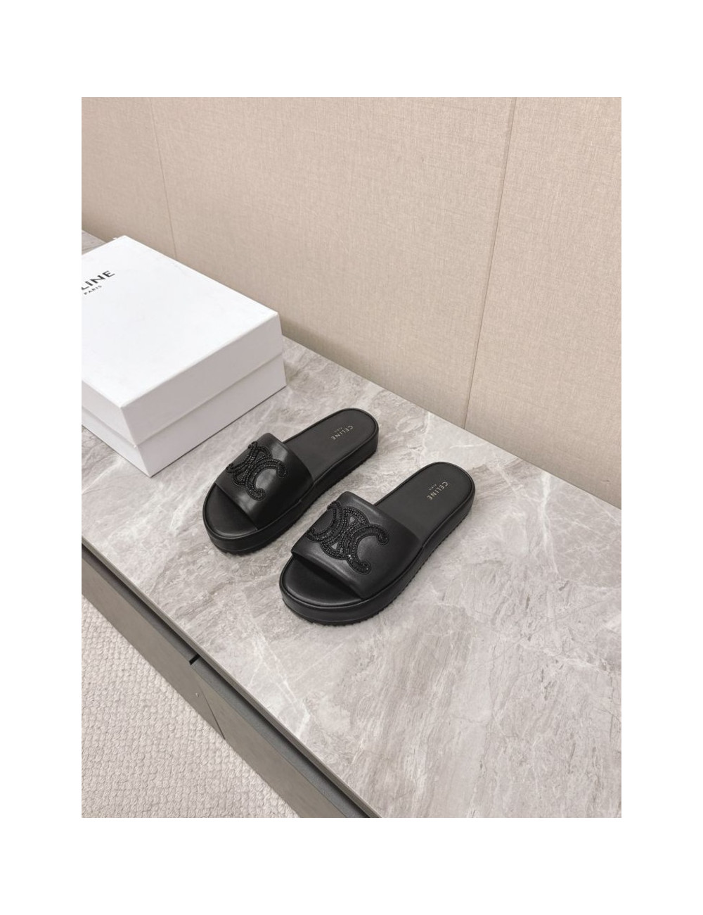트리옹프 블랙 비즈 로고 슬라이드 > 셀린느