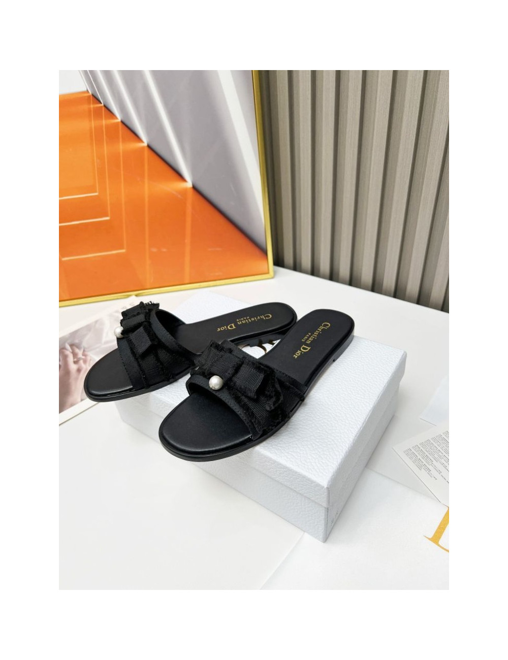 진주 포인트 오픈토 슬리퍼 > 디올