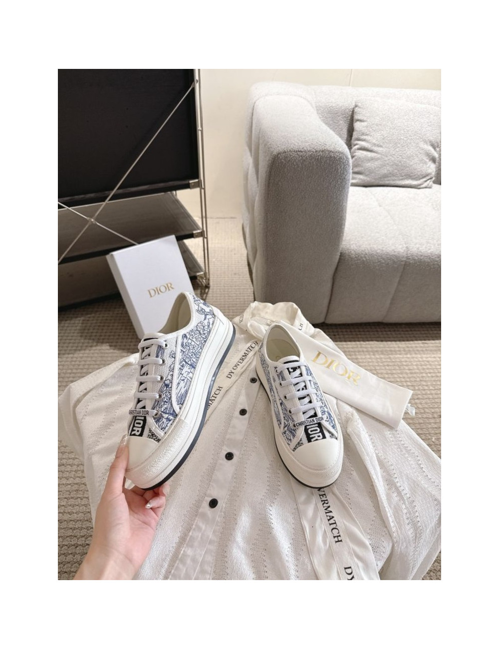 오블리크 자수 패턴 플랫폼 캔버스 스니커즈 > 디올