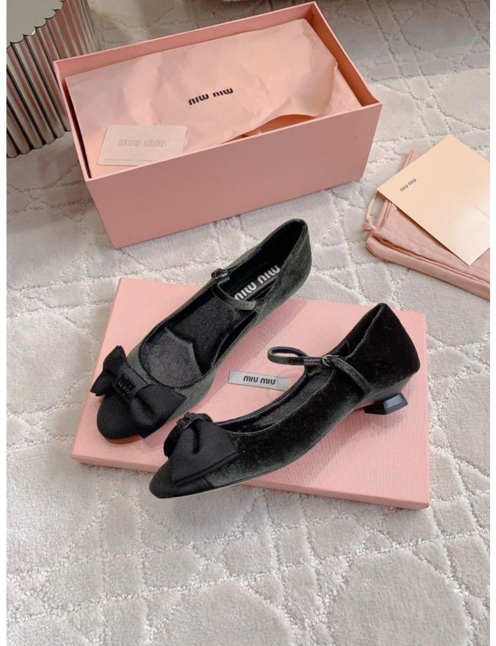 리본 장식 키튼힐 플랫 슈즈 > 미우미우