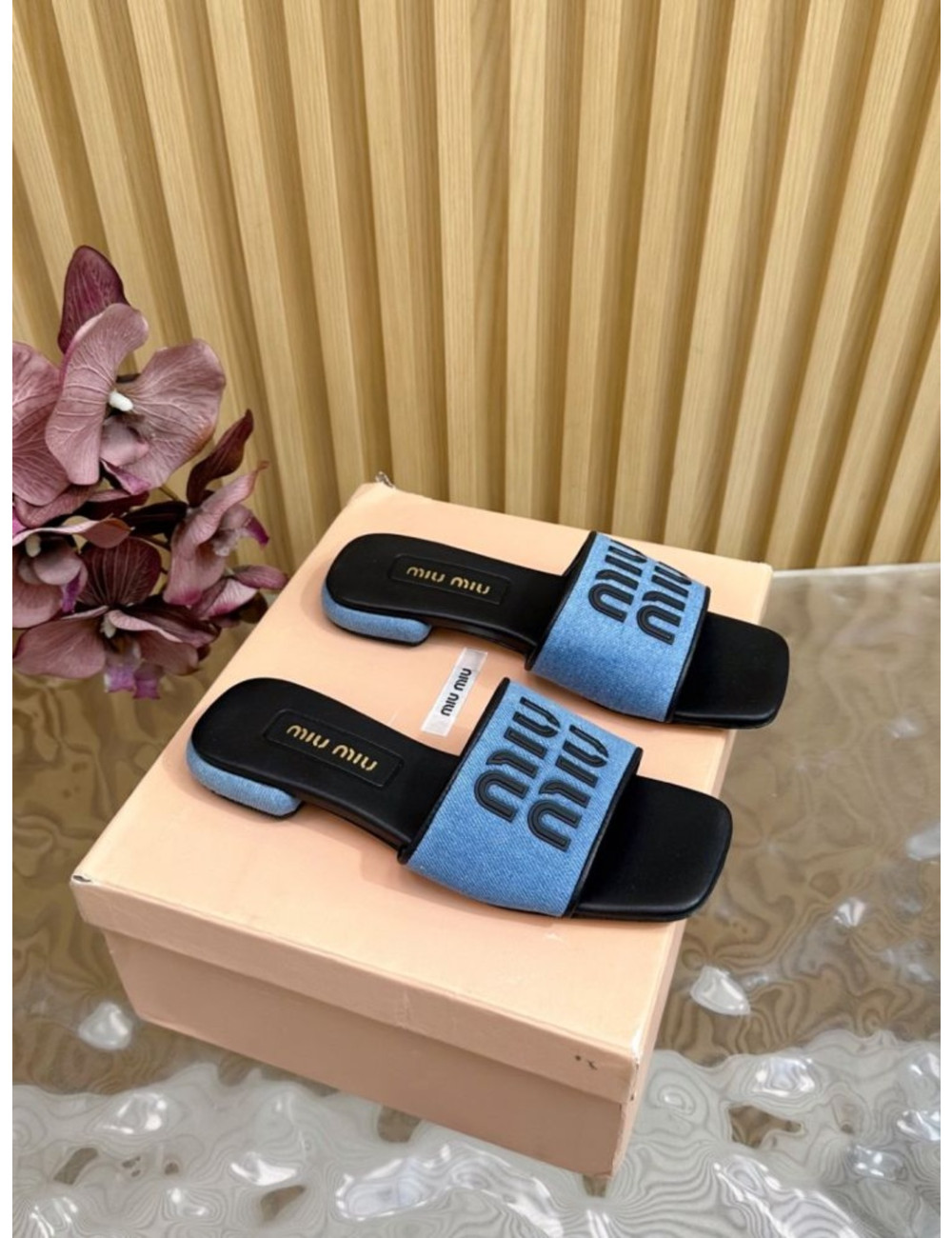 레터링 뮬 슬리퍼 > 미우미우
