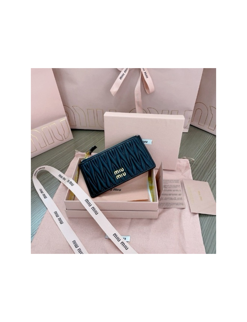 마테라쎄 가죽 파우치 블랙/핑크 > 미우미우